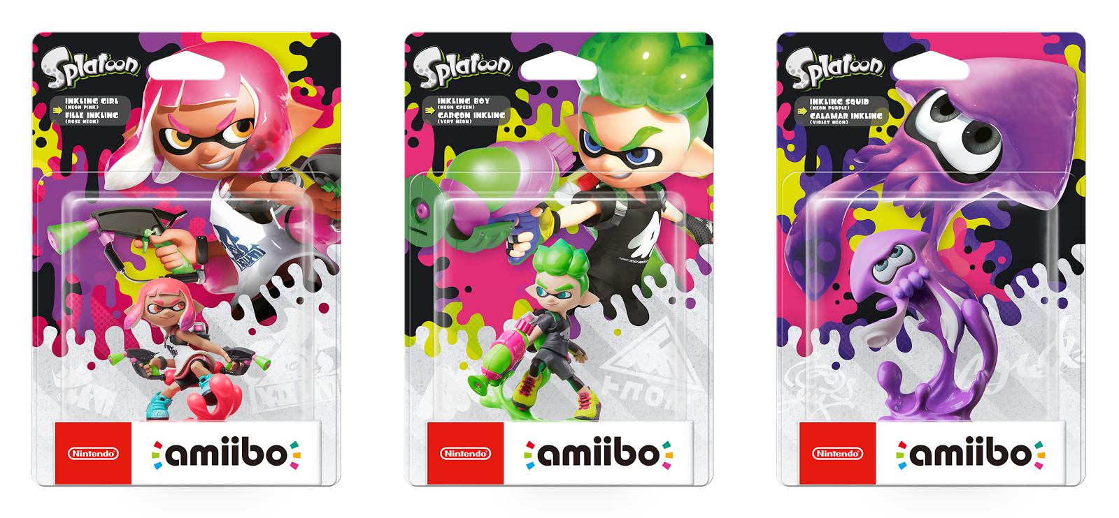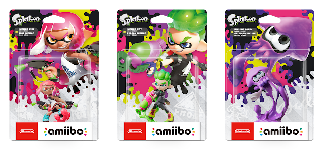 Foram também revelados 3 novos amiibo que acompanham o lançamento do jogo: Rapariga, Rapaz e Lula Inklings, todos eles com posições bastante diferentes dos anteriores. Os amiibo, para além de darem equipamento especial, e ao serem utilizados no jogo estes Inklings permitem-nos gravar as configurações dos nossos equipamentos favoritos, uma função bastante útil para umas Turf Wars em casa de amigos. Como nota, os amiibo do primeiro Splatoon são também compatíveis.