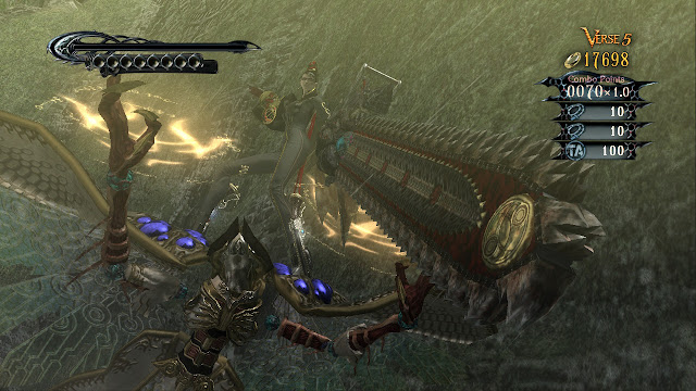Lançar todo um leque de ataques consecutivos através do timing com que premimos os botões ainda é uma jogabilidade que não consigo deixar de recomendar, e mesmo que não estejam habituados ao género basta jogar nos modos mais fáceis de dificuldade em que o conseguimos criar várias combinações diferentes, de forma automática. Não somos obrigados a fazer essas combos, até porque se optarmos pelo simples button mashing o jogo não nos censura, mas um bom leque de combinações resulta em mais pontos e um melhor rank no fim do capítulo. É bastante bom ter um jogo assim atualmente, pois é difícil encontrar jogos de ação frenética atualmente.